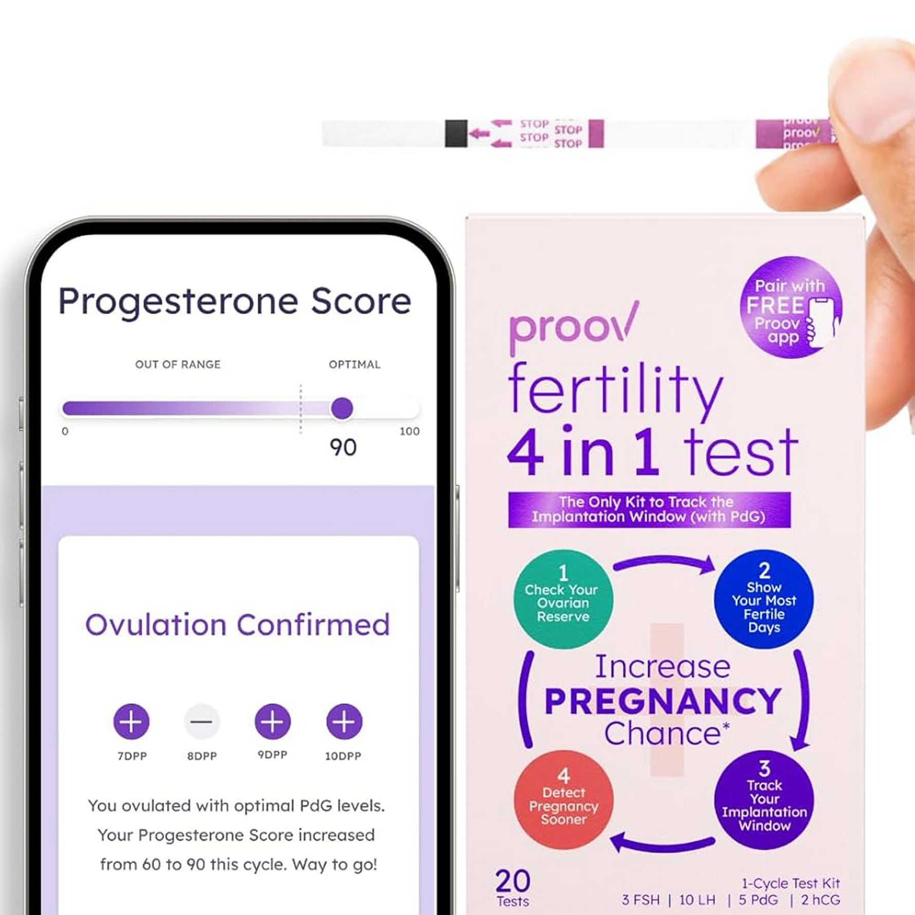 Avec le kit Proov 4-in-1, on ne regarde donc pas un chiffre isolé, maisl’évolution réelle des hormones au fil des jours — ce qui fait toute la différence pour comprendre son corps et sa fertilité.