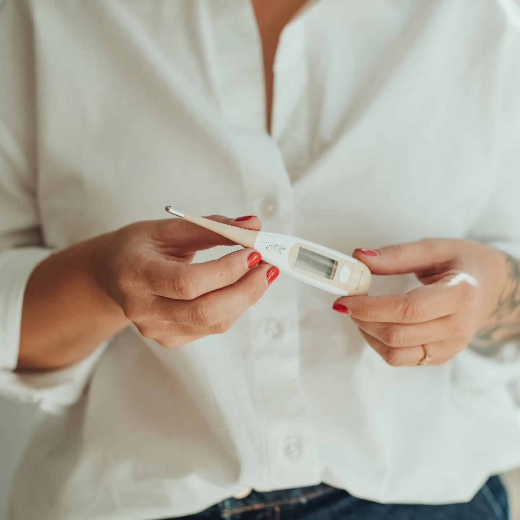 Et pas n’importe quel thermomètre, car il doit remplir certaines conditions, pour répondre au besoin de précision de la méthode symptothermique. C’est pourquoi nous avons développé ce thermomètre, qui rassemble tous ces critères, qui n’existaient jusqu’à présent dans aucun dispositif sur le marché !